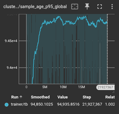 The most significant metric for stability is the 95th percentile (p95) age of the samples in the buffer. While the average age remains similar in both systems, the VCB shows a massive increase in how long it holds onto the "long tail" of experience.